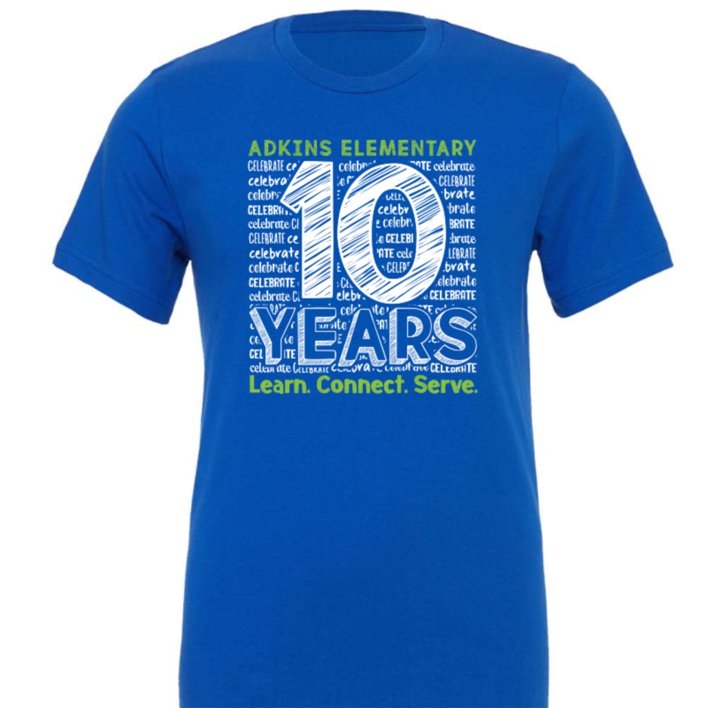 Bella + Canvas Jersey Tee in True Royal to celebrate Adkins 10th Anniversary.