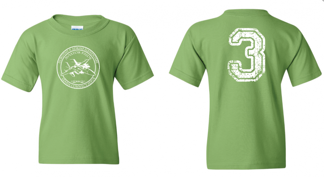 Third Grade: green tee with “3” on the back and white logo on front