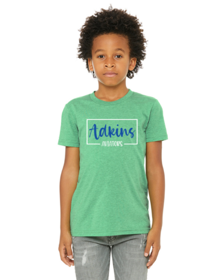 Bella + Canvas – Youth Triblend Tee in green with blue and white graphic. This is a Youth tee.