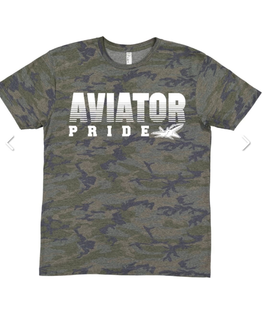 LAT Fine Jersey short sleeve tee with “Aviator Pride” in white.
