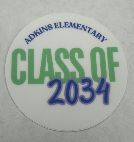 Circle sticker for 4th Grade students that says Class of 2034. Measures 2″ × 2″
