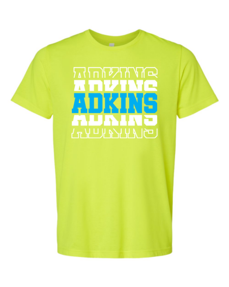 Port & Company tee in Neon Yellow with reverb Adkins name